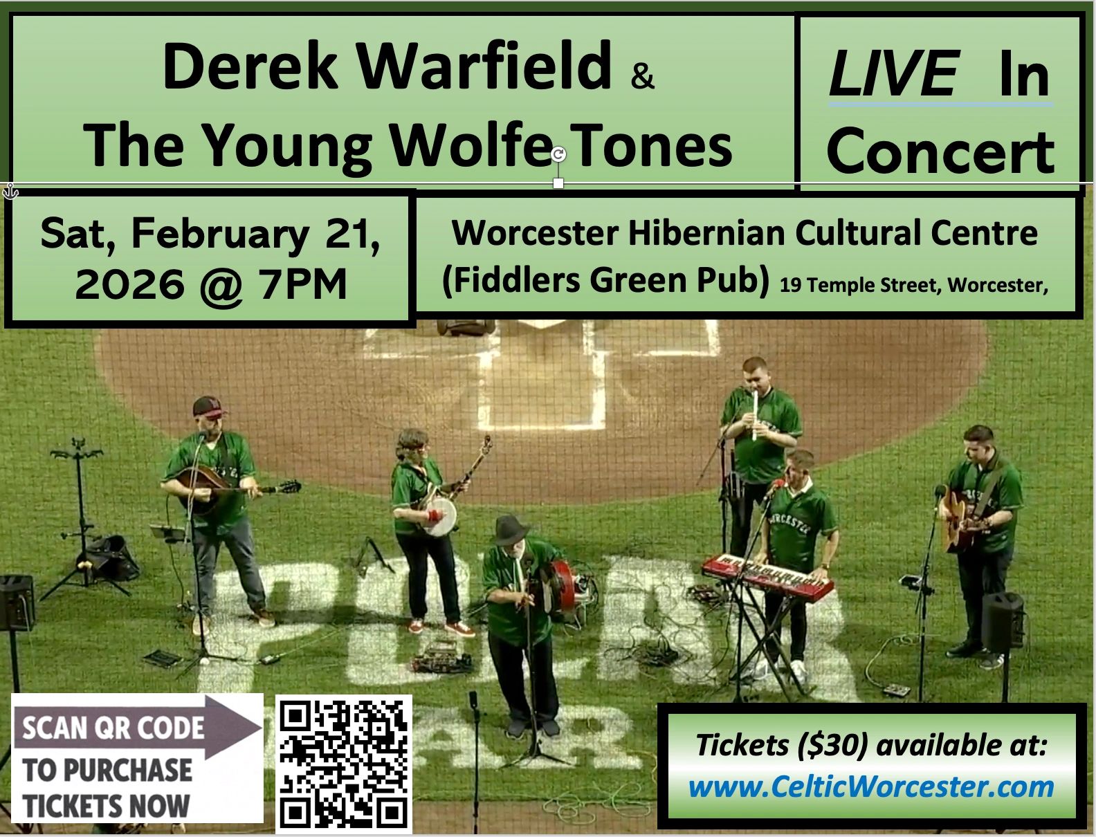 Derek and the band return to Worcester, Saturday, February 21st at the Hibernian Cultural Centre (Fiddlers Green Pub). Tickets now available online. Show starts at 7:00 PM